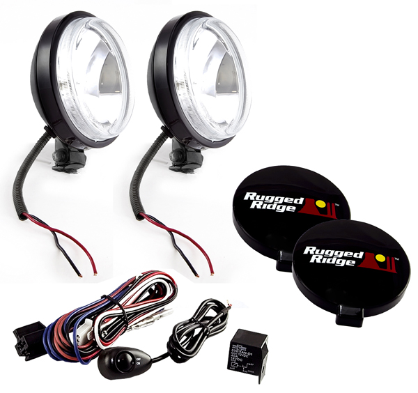 Designed, engineered, and tested to stand up to the rigors of off road use, the Rugged Ridge 6" Slim Fog Lights are constructed with heavy-duty stamped steel housings, and crystal glass lenses set in shock absorbent weatherproof rubber gaskets. The brilliant 12V 100 watt halogen bulbs slice through fog, rain or snow to help illuminate the road even under the toughest conditions. The Rugged Ridge 6" Slim Fog Lights feature a narrow profile just 2 13/16� thick! This sleek design allows them to be mounted in places most lights won�t fit. They are perfect for windshield and grille mount light systems.