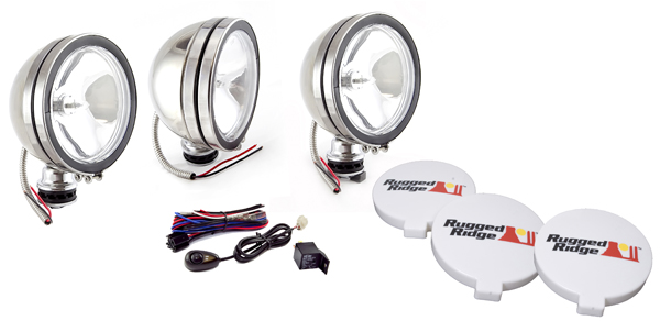 Rugged Ridge Three 6" Round 100 Watt Stainless Steel Fog Lamps Kit