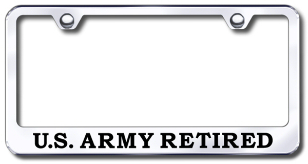 US Army Retired Laser Etched Stainless Steel License Plate Frame - Finish:Mirror