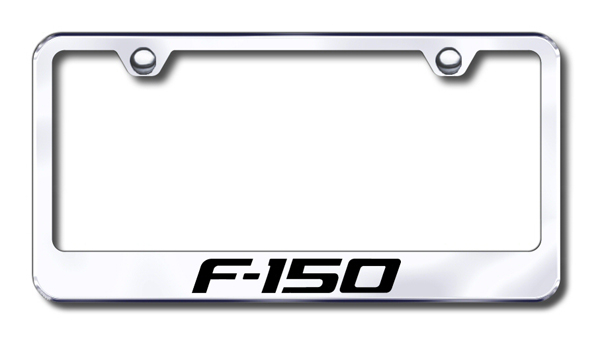 Laser-etched stainless steel license plate frame featuring Ford <em>F150</em> lettering