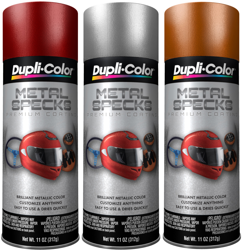 Dupli-Color� has taken old school color, introduced it to new school and created Metal Specks� � a �retro� look in a can. Metal Specks� takes off where Metal Flakes of the past have left off. Our new technology in paints and coatings combined with hot �retro� colors creates a look that jumps out at you. In the sunlight, Metal Specks shimmers with tiny floating metallic pieces suspended in color. Perfect for any automotive accessory, bikes, helmets � go back in time today!