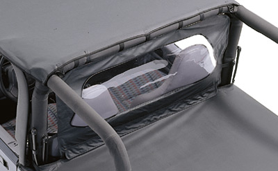 Provides protection from dust, rain and other debris from entering the cab of your Jeep and also keeps heat in during the cold winter months. Easily attaches to the sport bar with durable nylon straps. Constructed of durable soft top fabric that matches other Rugged Ridge Accessories. Special rear opening allows for easy access to cargo area: zips open and closed. DOT approved rear glass allows for rear visibility.