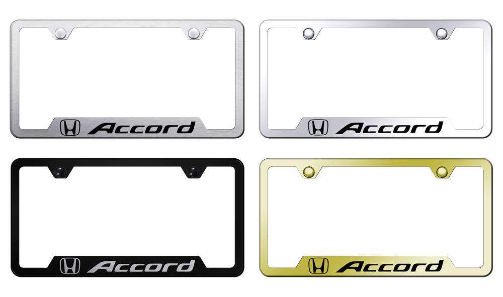 Honda Accord Laser Etched Stainless Steel Cut-Out License Frame - Finishes:Brushed