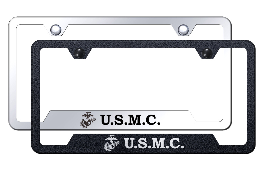 U.S.M.C. Initials Laser Etched Stainless Steel Cut-Out Frame - Finish:Mirrored
