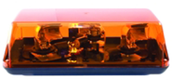 Amber light bar with rotating lights in UV-treated lens and a durable plastic base