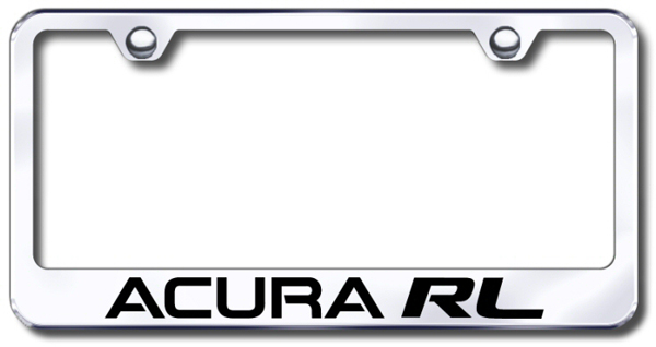 Laser-etched stainless steel license plate frame featuring <em>Acura RL</em> lettering