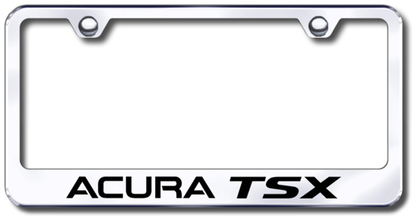 Laser-etched stainless steel license plate frame featuring <em>Acura TSX</em> lettering