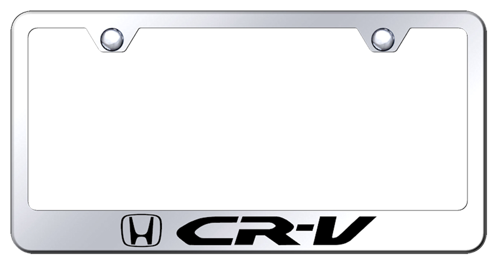 Laser-etched stainless steel license plate frame featuring Honda <em>CR-V</em> logo and lettering
