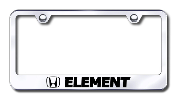 Laser-etched stainless steel license plate frame featuring Honda <em>Element</em> logo and lettering
