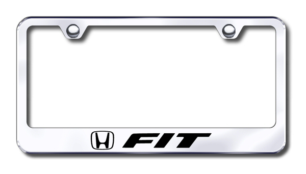 Laser-etched stainless steel license plate frame featuring Honda <em>Fit</em> logo and lettering