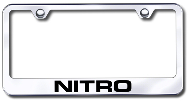 Stainless steel license plate frame featuring the <em>Dodge Nitro</em> name