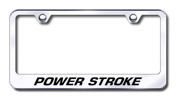 Laser-etched stainless steel license plate frame featuring Power Stroke lettering