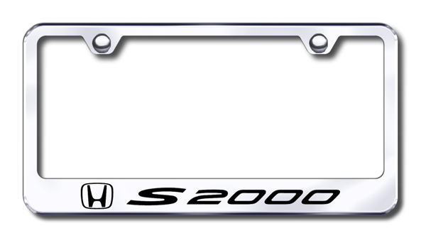 Laser-etched stainless steel license plate frame featuring Honda <em>S2000</em> logo and lettering