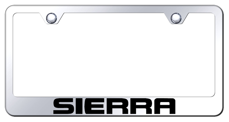 Laser-etched stainless steel license plate frame featuring Chevy Sierra lettering