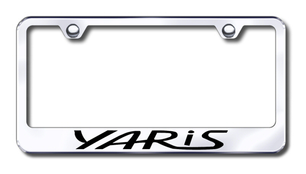Laser-etched stainless steel license plate frame featuring Toyota <em>Yaris</em> lettering