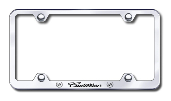 Cadillac Laser Etched Stainless Steel Wide License Plate Frame - Finish:Mirror
