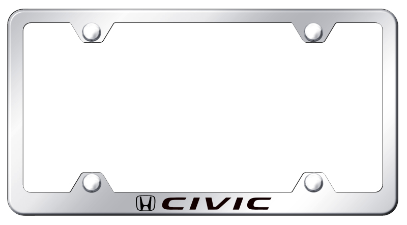 Honda Civic Laser Etched Stainless Steel Wide License Plate Frame - Finish:Mirror