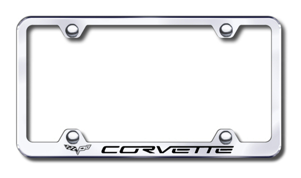 Corvette Laser Etched Stainless Steel Wide License Plate Frame - Finish:Brush