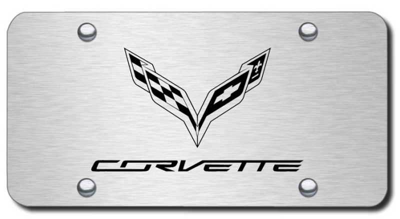 Laser Etched Corvette C7 Logo Stainless Steel License Plate - Finish:Brush