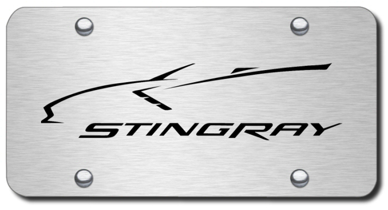 Laser Etched Stingray Corvette Stainless Steel License Plate - Finish:Black