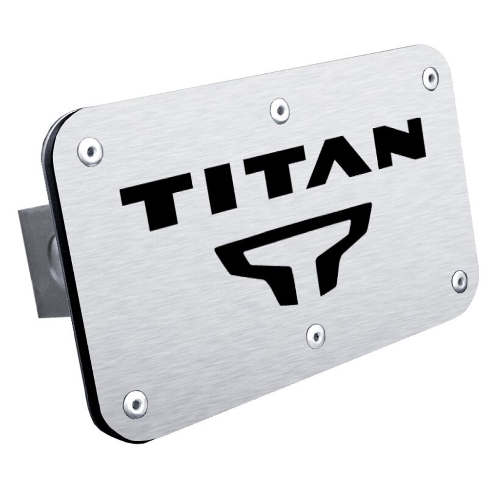 Nissan Titan Stainless Steel Name & Logo Class III Hitch Plug - Finish:Rugged Black