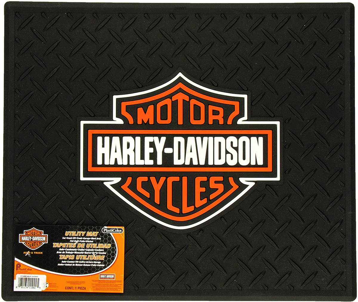 Rubberized utility mat featuring official <em>Harley Davidson</em>� logo