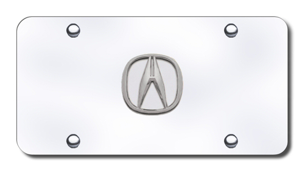 Stainless steel license plate featuring a 3D chrome <em>Acura</em> logo