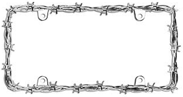 Give your vehicle a touch of style, by adding the newly designed Barbed Wire II license plate frame. Features more barbs that capture an authentic looking ranch wire. Designed to minimize plate coverage to conform to many state laws. Made of Zinc die cast metal and chrome plated for a unique look.