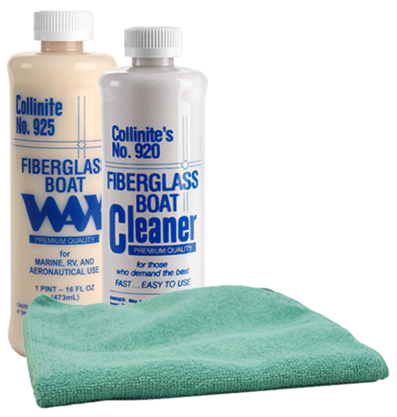 Kit contains: 1 Fiberglass Boat Cleaner, 1 Fiberglass Boat Wax & 1 Microfiber Towel