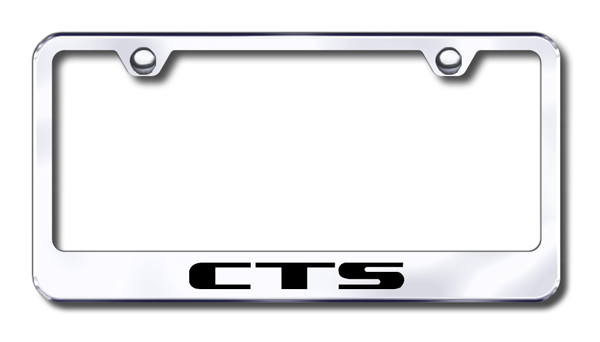 Laser-etched stainless steel license plate frame featuring <em>Cadillac CTS</em> lettering