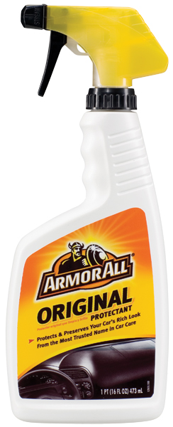 Armor All Protectant has been used by more than 90 million people in over 75 countries. With four times more UV blocking ingredients than the number-two brand, it guards against dashboard cracking and discoloration. It's also safe for hundreds of other products, including boats, patio furniture, sporting goods, sealed wood/finished leather furniture, luggage and shoes, vinyl siding and more. Guards against discoloration and cracking caused by ozone, UV radiation and extreme temperatures. Restores new look instantly and removes grime that can wear out the vinyl, rubber and plastic parts of your car. Non-toxic, contains no alcohol or solvents.