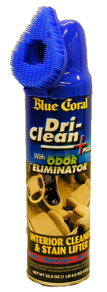 Blue Coral Dri-Clean Carpet & Upholstery Cleaner is the quick and easy way to clean carpets and upholstery, including wool, nylon and other synthetics. Its penetrating foam lifts and suspends dirt above the surface allowing it to be easily wiped away. The improved formulation enables Dri-Clean Carpet and Upholstery Cleaner to clean old, new, oil and water based stains. 22.8 oz.