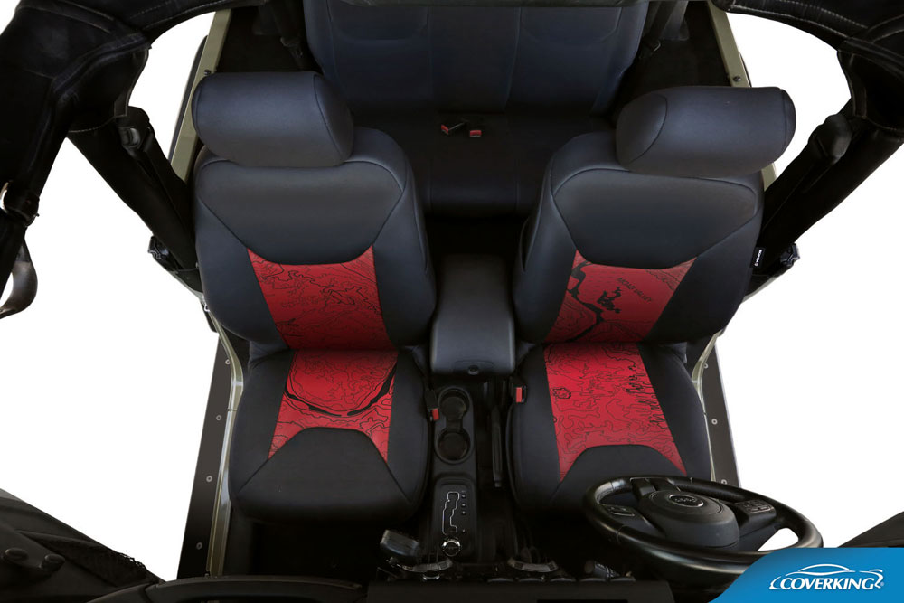 Coverking Custom Black on Red Neosupreme Seat Cover for Jeep Wrangler (13-17)