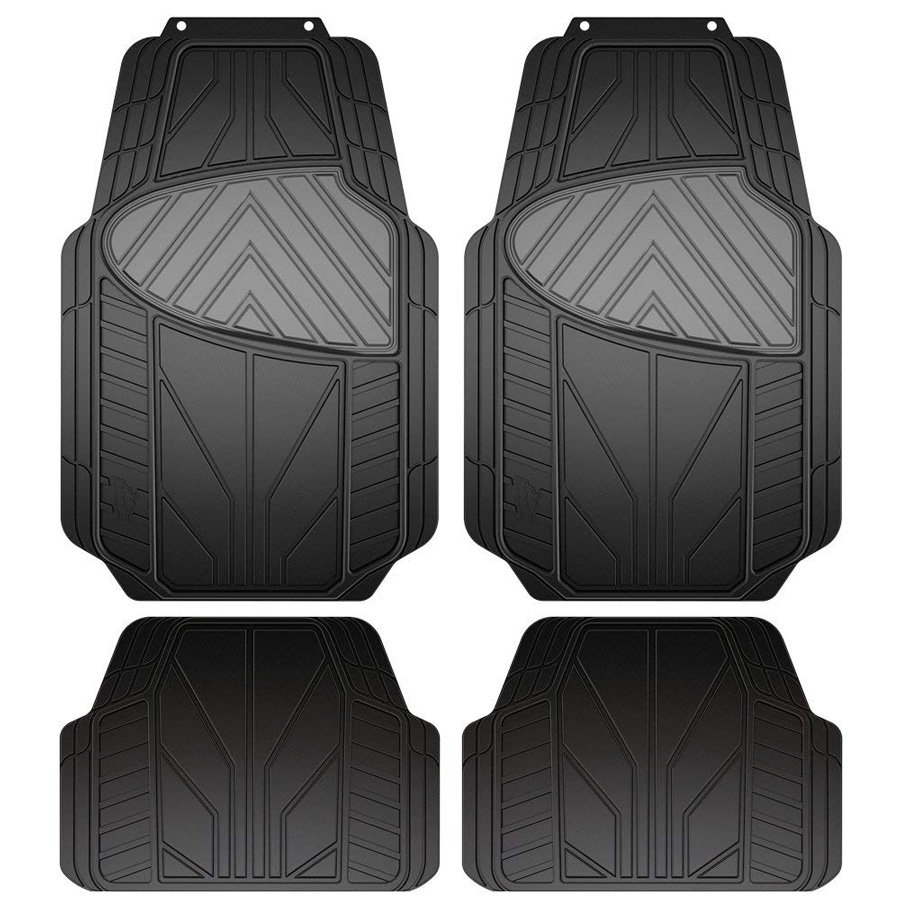 Heavy duty black and grey rubber floor mats form an impenetrable layer of protection for your vehicle in any climate