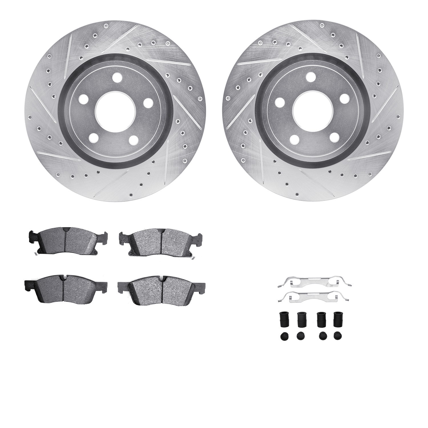 DFC Brake Rotor - Dimpled & Slotted - Silver w/5000 Brake Pads & HW Kit