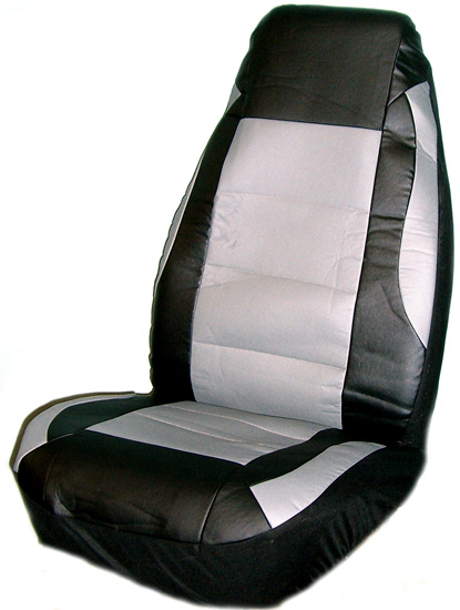 Bucket seat covers featuring a grey on black Eurotech design
