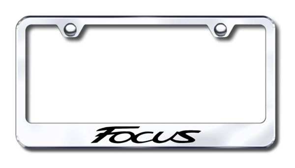 Laser-etched stainless steel license plate frame featuring Ford <em>Focus</em> lettering