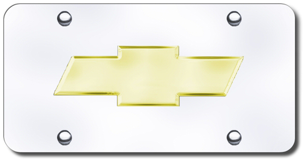 The Chevy Logo License Plate is adorned with a 3 Dimensional 24K Gold Plated, Chevy logo mounted on a polished stainless steel plate with an eye-catching mirrored finish. Each plate comes with vehicle specific hardware, matching screw caps to conceal unsightly hardware and a lifetime warranty against flaws in materials and workmanship. Made in the USA