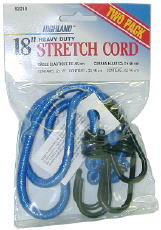These Highland Heavy Duty Stretch Cords are great for cars, trucks, vans, motorcycles, campers, boats, or even for around the house. Includes 2 18" Stretch Cords.