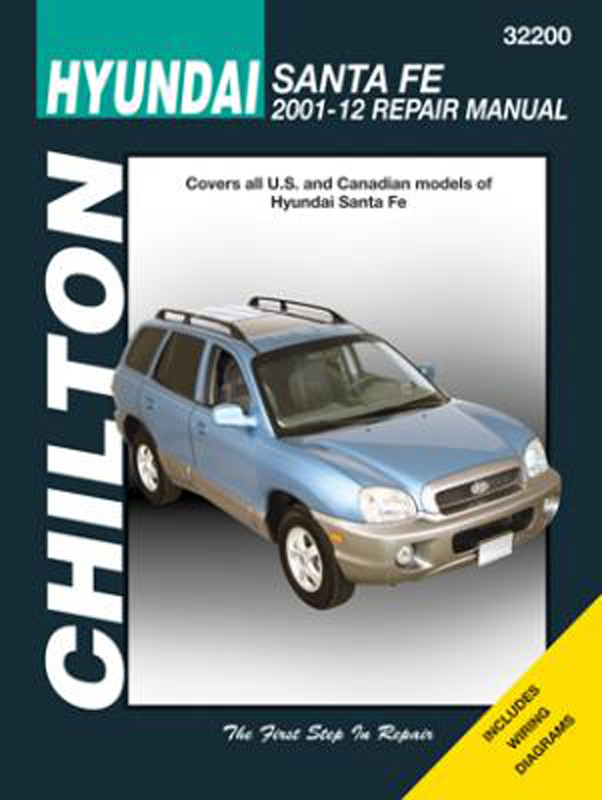 The Chilton Total Car Care repair manual offers do-it-yourselfers of all levels of total maintenance, service and repair information in an easy-to-use format. The Hyundai Chilton Repair Manual for 2001-2012 covering all models of Santa Fe includes these great features: Model-specific coverage, simple, step-by-step procedures for engine overhaul, chassis electrical, drive train, suspension, steering and more, trouble codes, and electronic engine controls.