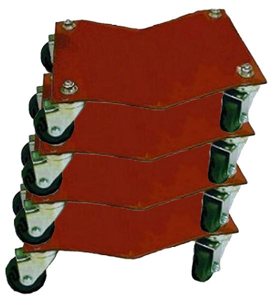 The Heavy-Duty Auto Dolly will quickly become one of the handiest tools in your garage, shop, or showroom. The Heavy-Duty Auto Dolly increases the capacity rating of an Auto Dolly set by 67%. Even 10,000 lbs can be moved in any direction with precision. It is designed to allow one-person to move automobiles, trucks, lawn mowers, jet skis, motorcycles, and most other heavy vehicles with ease. Gain precious floor space by moving items right up against a wall or into a corner! The Auto Dolly is placed under each tire of the vehicle, making the vehicle a rolling cart that will now roll in any direction with ease. The large roller bearing casters make it simple for anyone to move the vehicle in any direction. Each standard Auto Dolly is rated to hold 2,500lbs. (10,000 lbs. total).