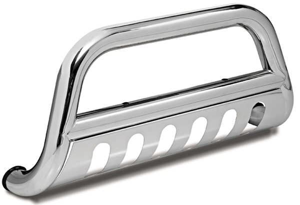 The Jeep Grand Cherokee Stainless Steel Bull Bar features prime 304L, 1/2 inch wall stainless tubing polished to a mirror finish. The polishing process pulls the true shine out of the metal. By using only prime 304L stainless steel, the stainless steel bull bar will never rust, providing years of use and great looks. Features a no hassle installation. Each bull bar is custom fit for the specific vehicle making sure the mount points are the strongest available. Tough 3/8-inch-1/4-inch powder coat painted mounting brackets and oversized hardware ensure that the bull bar provides years of vibration free use. Each Bull Bar includes a matching skid plate for added protection and dynamic good looks. Each skid plate is laser cut to ensure clean smooth lines and a no hassle installation.