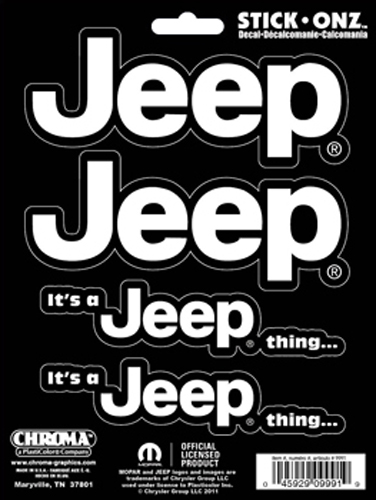 Self-adhesive vinyl decals featuring <em>Jeep</em> logo and text