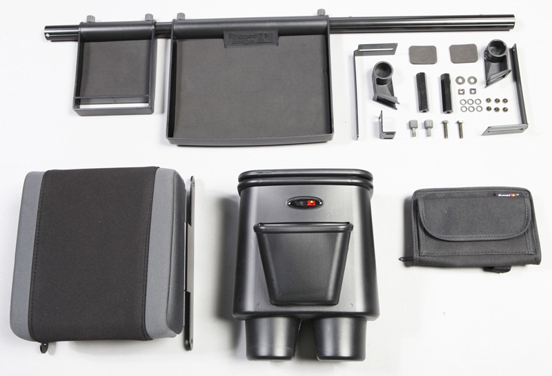 Includes a dash organizer, a rear seat organizer, a sun glass holder, and an arm rest pad