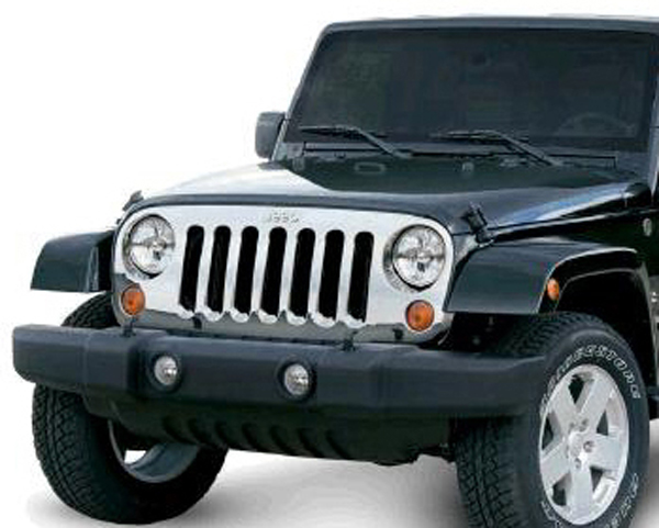 Jeep Wrangler JK Chrome Grill Cover gives your Jeep's front end a unique and custom look.