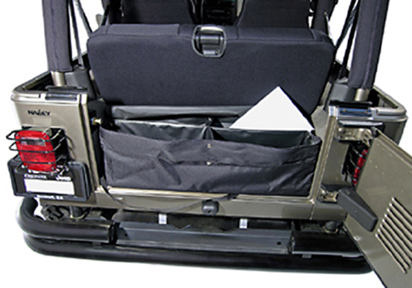 Custom designed to provide removable storage for Jeep vehicles. Special size fits behind rear seat to organize and store your cargo. Constructed of durable vinyl with a zipper top and removable cargo dividers - easy to use shoulder strap included.