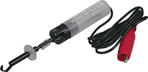 The "Handy Hooker" Circuit Tester is made with a hooded probe that protects your fingers and automatically centers the wire. Small size allows easy use in even the tightest places. Quickly test low voltage up to 28 volts. Alligator clip ground tester.