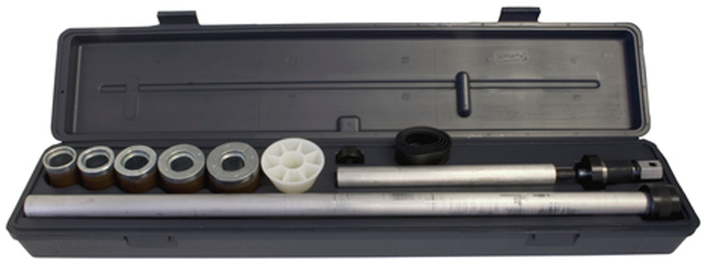 Now, one complete low cost set that will remove or insert camshaft bearings in nearly all engines from compact cars to heavy trucks. Range of 1.125" to 2.69" (28.58 - 68.3mm). The expander has a neoprene sleeve over which the split driving plugs are mounted and expanded to size. This tool has two sets of rubber sleeves supplied with it for each expanding driver. The brown sleeves are used when driving thin wall bearings (.065). The black sleeves should be used when driving thick wall bearings (.090). Instruction sheet T18000 provides complete, illustrated operating instructions and parts list.