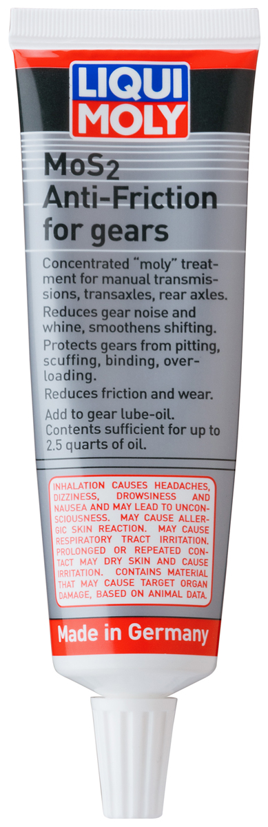 The antifriction lubricant MoS2 forms a high load-bearing film of lubricant on all friction and sliding surfaces. This product reduces friction and guarantees energy-conserving performance for the unit. This yields the following advantages: significant savings in fuel and oil consumption, scientifically proved reduction in wear, fewer breakdowns, emergency lubrication properties. Tested on catalytic converters and turbochargers.