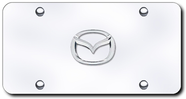 3D stainless steel license plate frame featuring <em>Mazda</em> logo